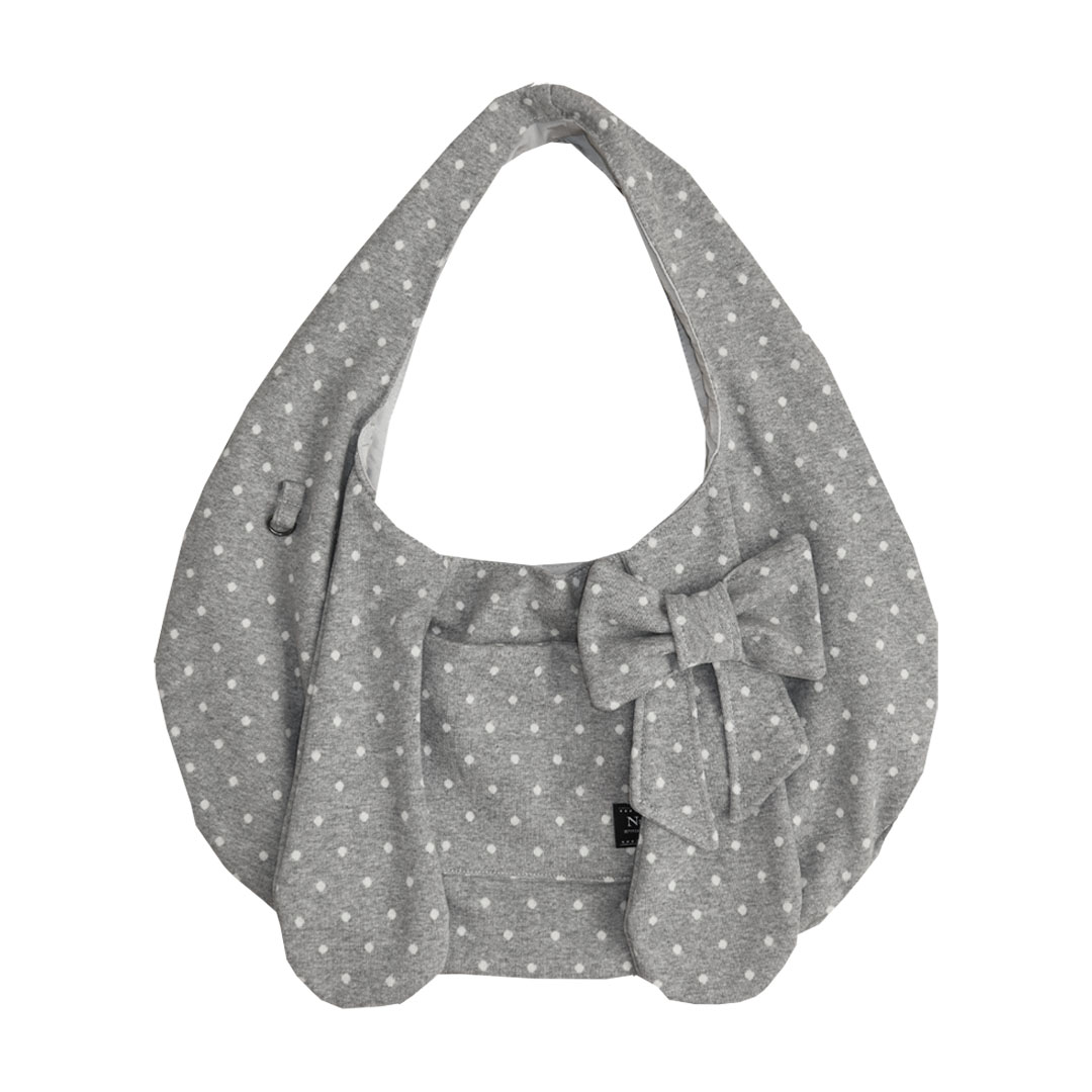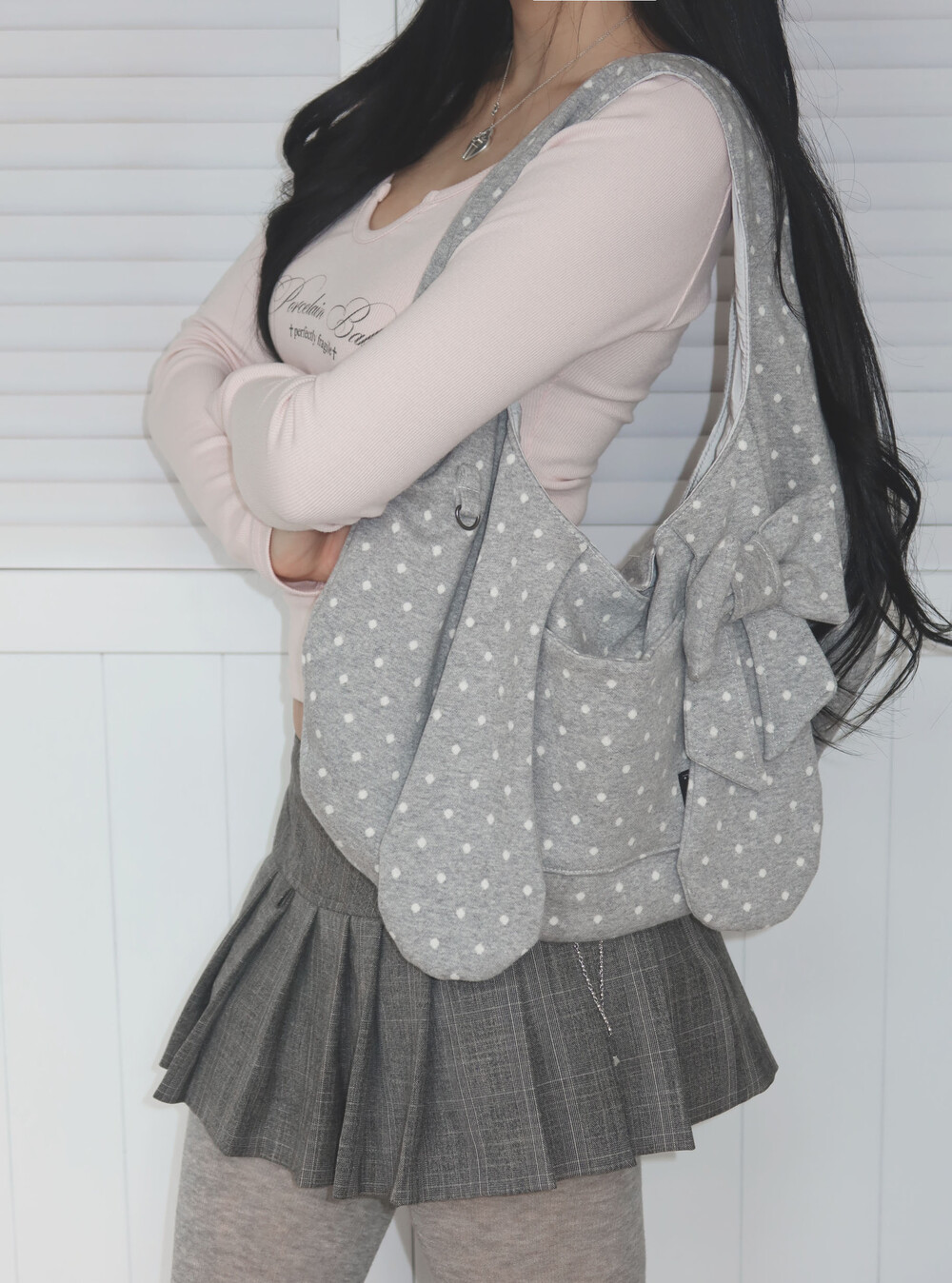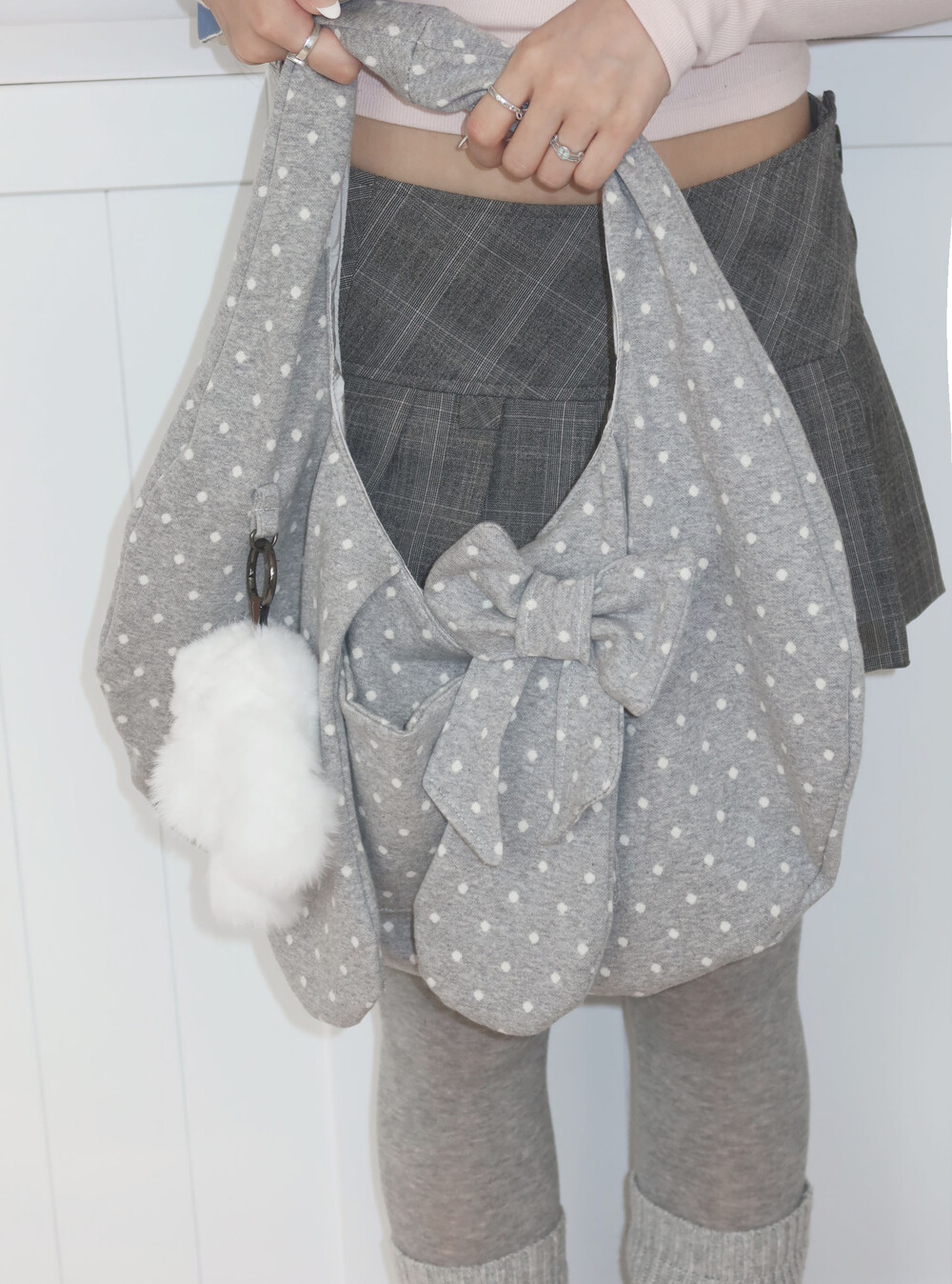 Bunny Ribbon Hobo Bag _ Grey Polka Dot