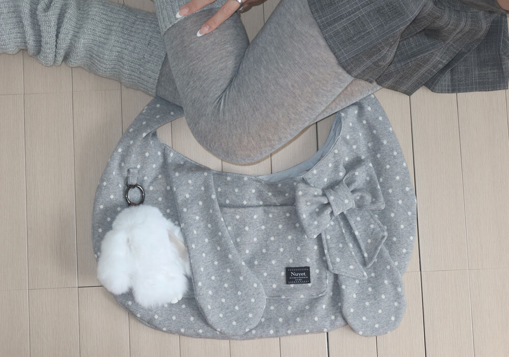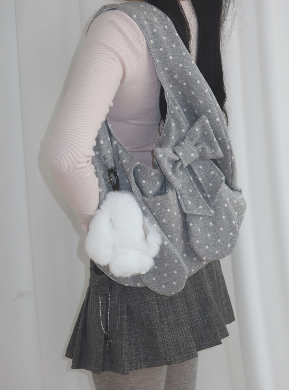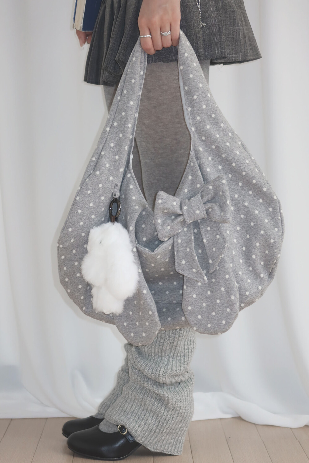 Bunny Ribbon Hobo Bag _ Grey Polka Dot